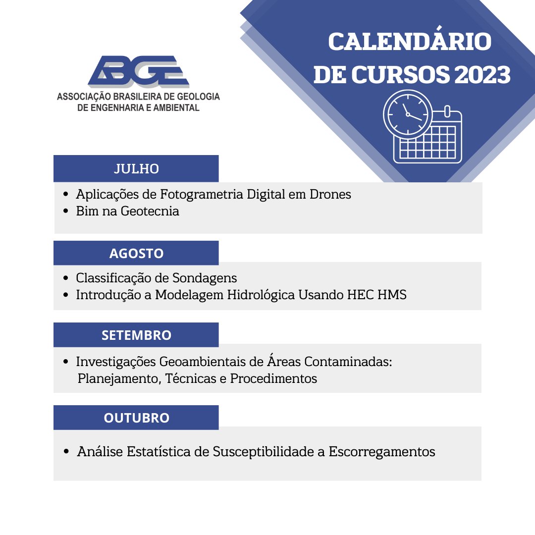 Calendário de Cursos ABGE 2023 2º semestre Em breve maiores informações!