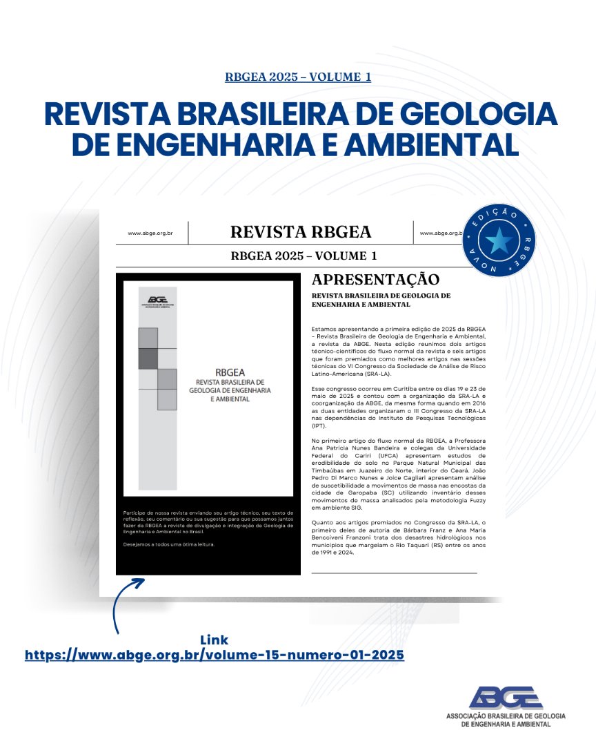 A primeira edição de 2025 da RBGEA – Revista Brasileira de Geologia de Engenharia e Ambiental